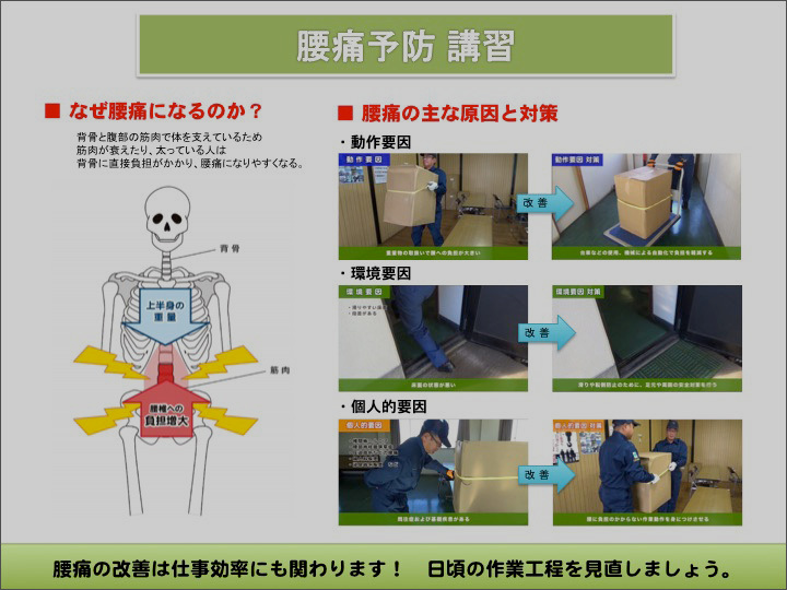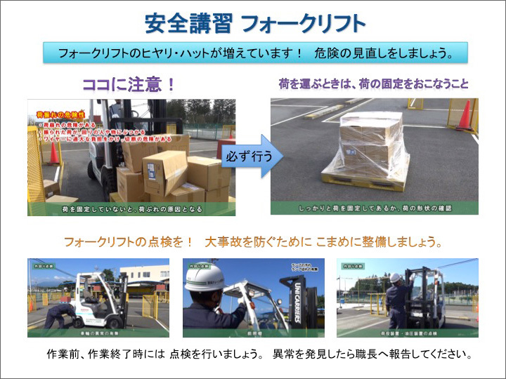 動画ファイルのコピーができるので、DVD・SDカードに入れて市販プレーヤーの繰り返し機能で再生。休憩ロビーのテレビやパソコンで流し続けることで、安全意識を高めることができます。音がないので邪魔になりません。